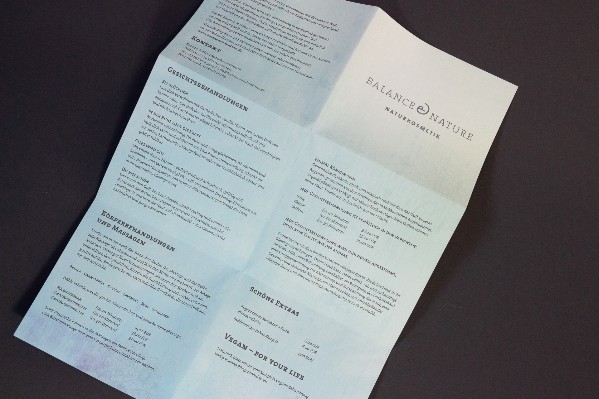 Komplettes Erscheinungsbild für das Kosmetikstudio “Balance & Nature” in Auenstein bei Ilsfeld: