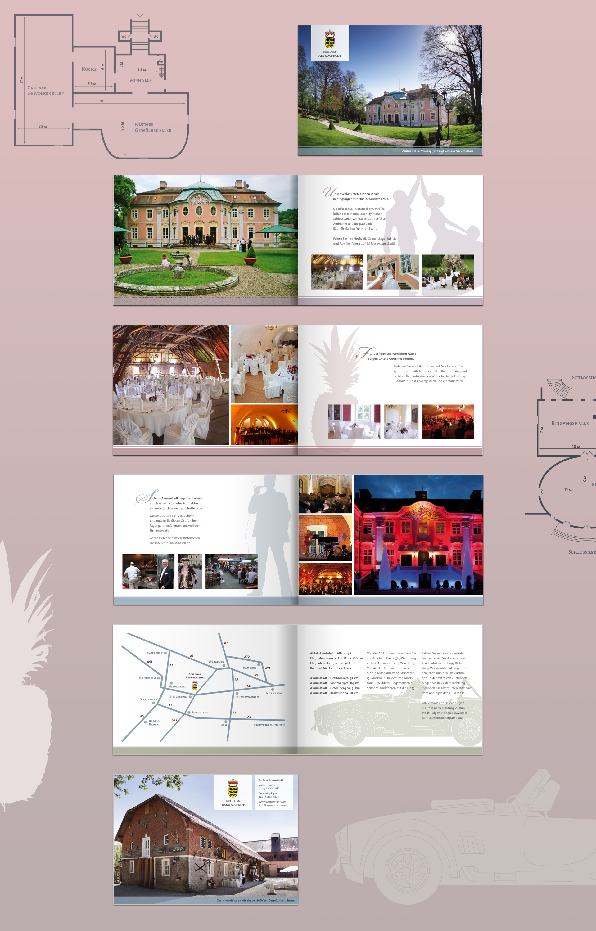 Schloss Assumstadt ist seit 2011 unser Kunde. Seither entstanden Logo: Wortmarke mit bestehendem Wappen, eine Imagebroschüre, etliche Anzeigen, Anhängerbeschriftung u.v.m.