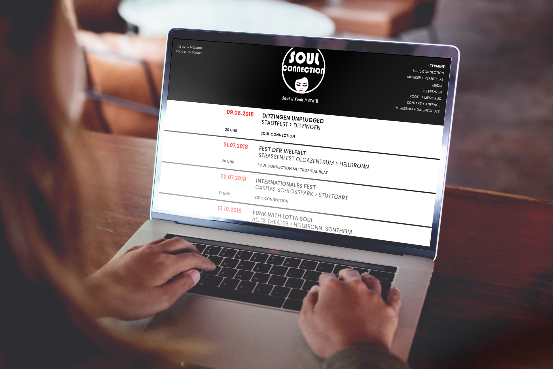 Für die Heilbronner Band Soul Connection hat studio baur ein überzeugendes und authentisches Erscheinungsbild geschaffen. Logo, Schrift, Plakat- und Flyergestaltung, Webdesign und der Umgang mit wechselnden Farbräumen treffen den richtigen Ton und machen Lust auf die Live-Konzerte der Band, die immer wieder Spaß machen! Die Flyer und Plakate, die für jeden Auftritt ein anderes Farbklima verpasst bekommen, werden auch gerne von den einem oder anderen Sammler gehortet.